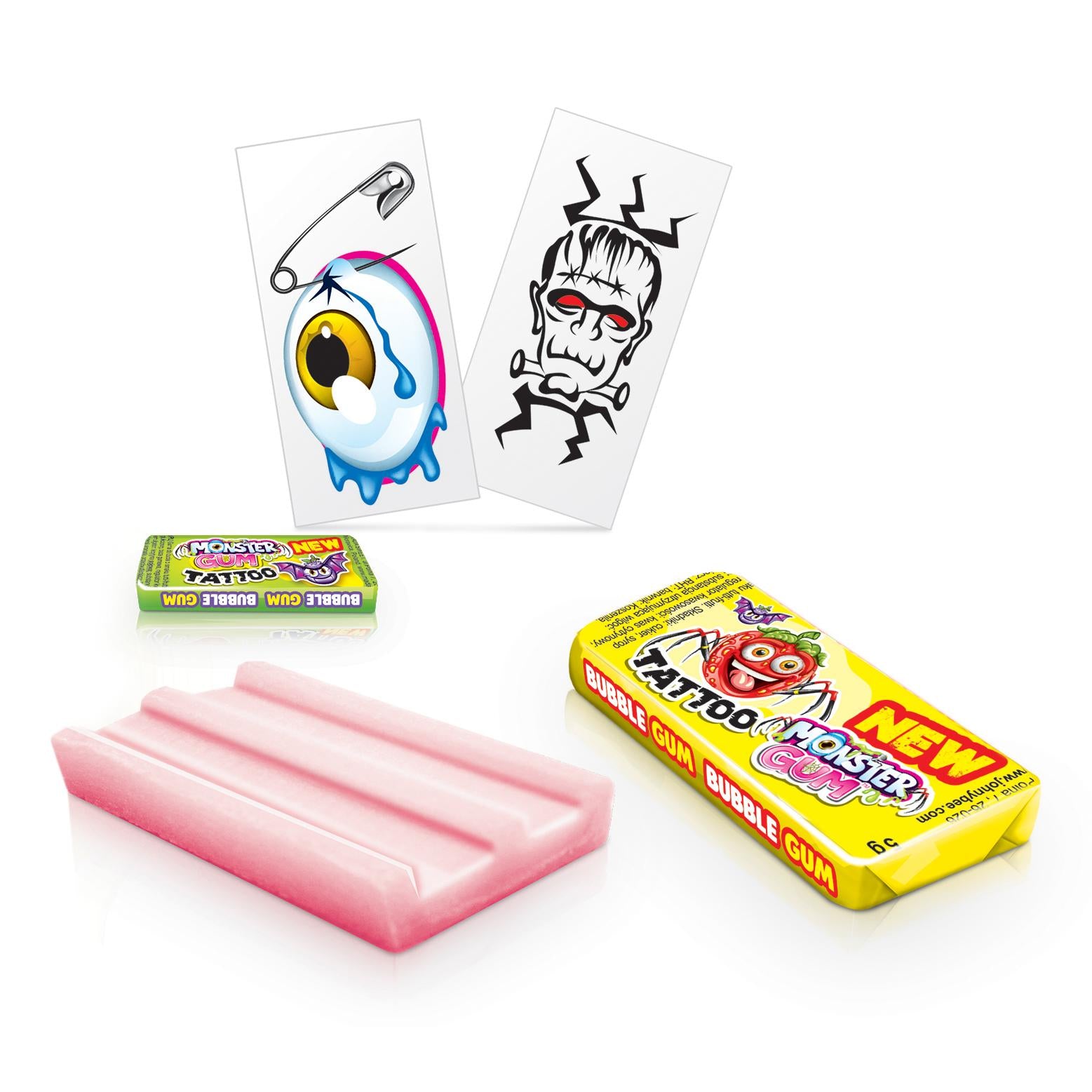 Chicle con envoltorio temático de monstruos y tatuaje incluido.